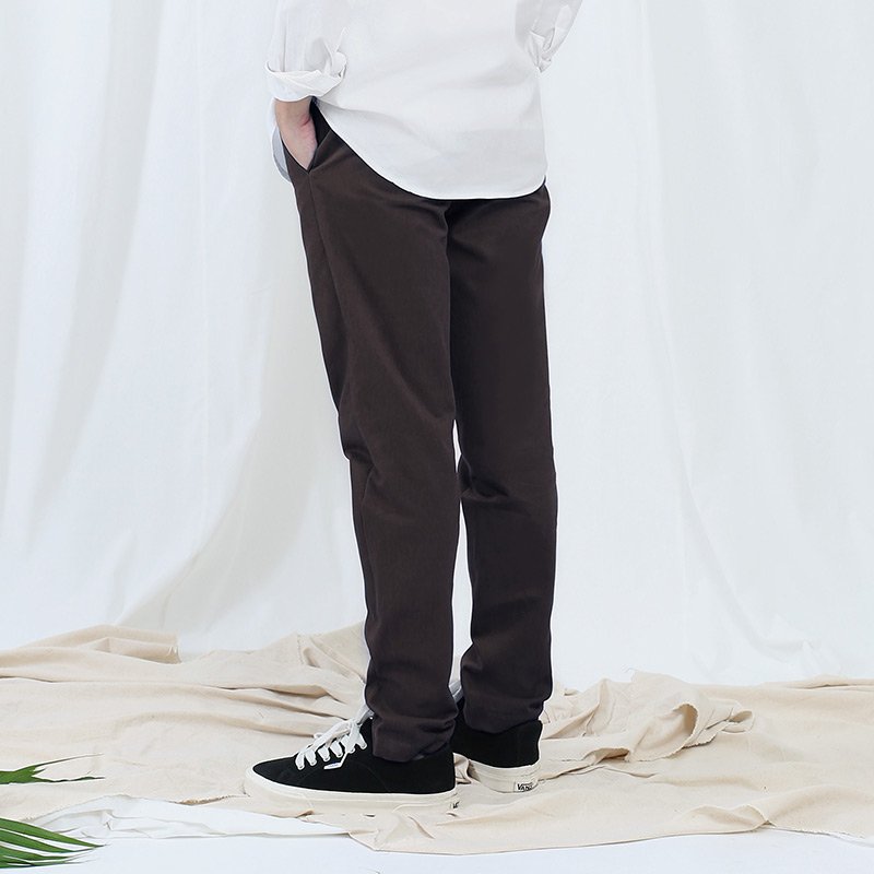 Lp.005 กางเกงขายาวผู้ชาย ผ้าชิโน สีน้ำตาลเข้ม Dark Brown