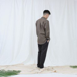 กางเกงขายาวผู้ชาย ผ้าชิโน Cotton Peach ฟอกนิ่ม สีดำฟอก Washed Black เนื้อผ้านุ่มพิเศษ ใส่สบาย ออกแบบด้วยกระเป๋าเจาะด้านหลัง ทรง Vintage Loose ปลายขาเข้ารูป