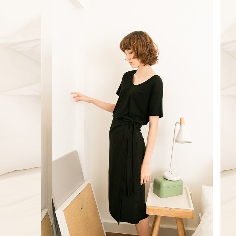 กระโปรงผู้หญิงผูกเอว Pencil Bow Tied Skirt สีดำสุดคลาสิค ทรงสอบ มีดีเทลกระโปรงป้ายผูกข้าง เนื้อผ้า Cotton นุ่มๆ พริ้วสวย
