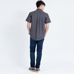 Mr.474 เสื้อเชิ้ตผู้ชายแขนสั้น ลายจุด Paisley สีดำ