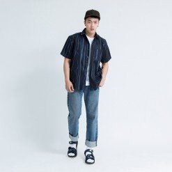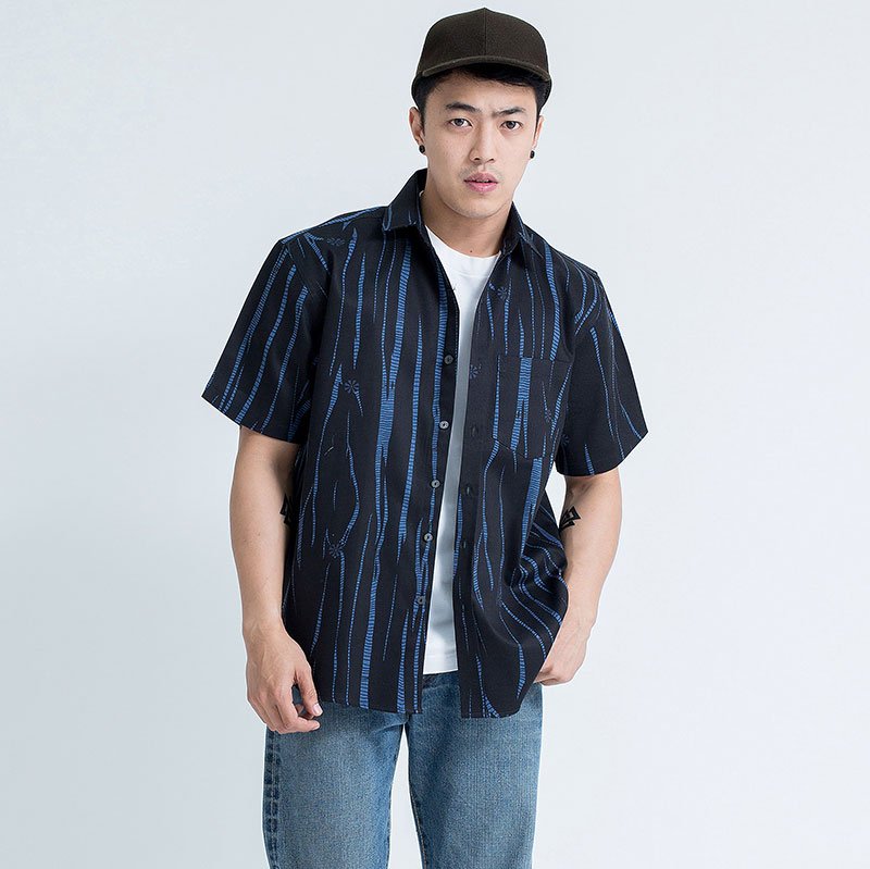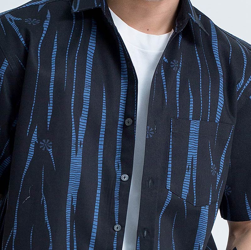 Mr.517 เสื้อเชิ้ตผู้ชายแขนสั้น ลาย Wild Wood สีดำ