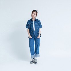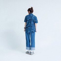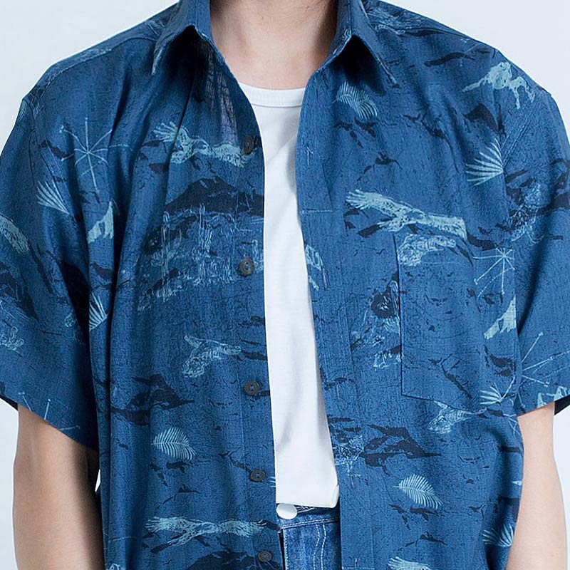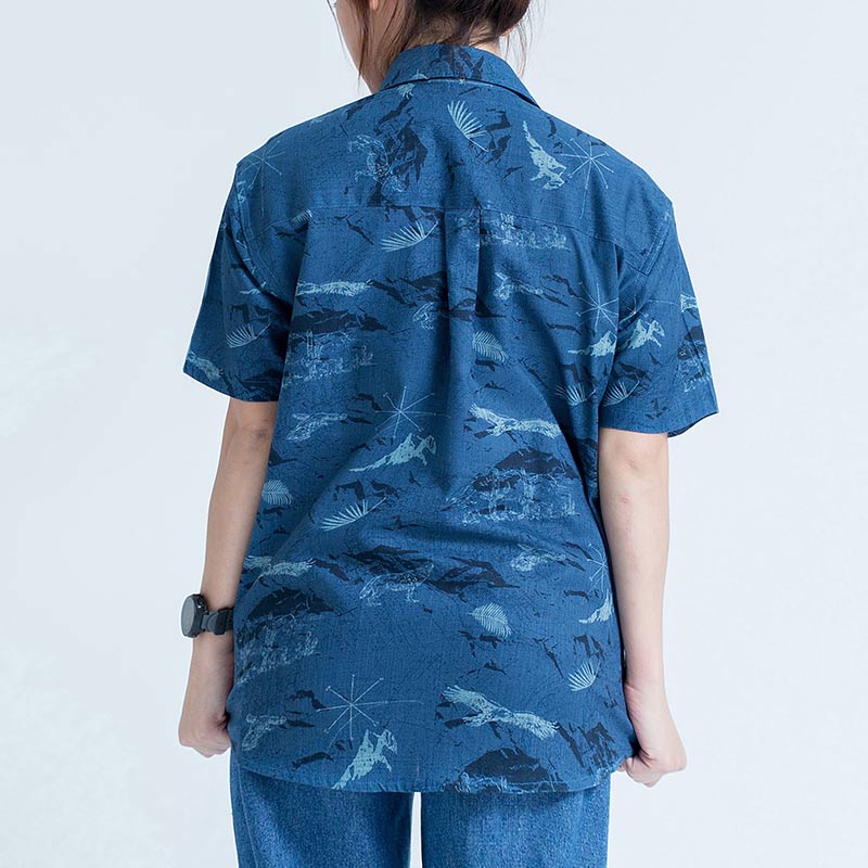 Mr.519 เสื้อเชิ้ตผู้หญิงแขนสั้น ลาย Midnight Wildlife สีน้ำเงินเข้ม