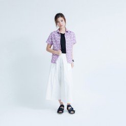 Mr.530 เสื้อเชิ้ตผู้หญิงแขนสั้น ลายจุด Tiny Heron สีม่วงพาสเทล