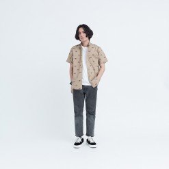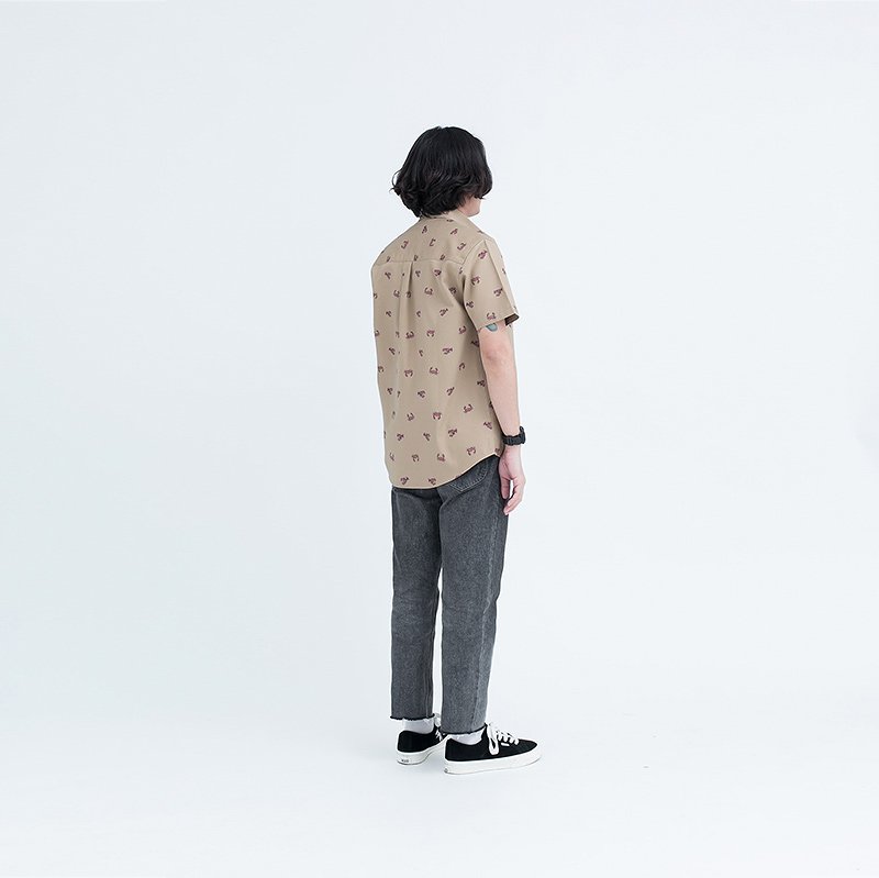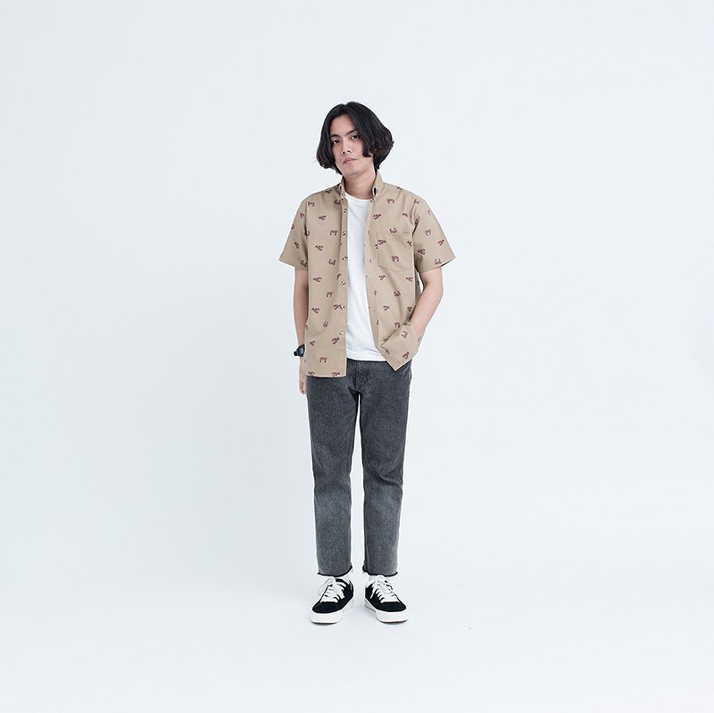 Mr.534 เสื้อเชิ้ตผู้ชายแขนสั้น ลายจุด Summer Lobster สีน้ำตาลเบจ