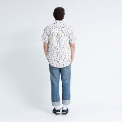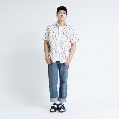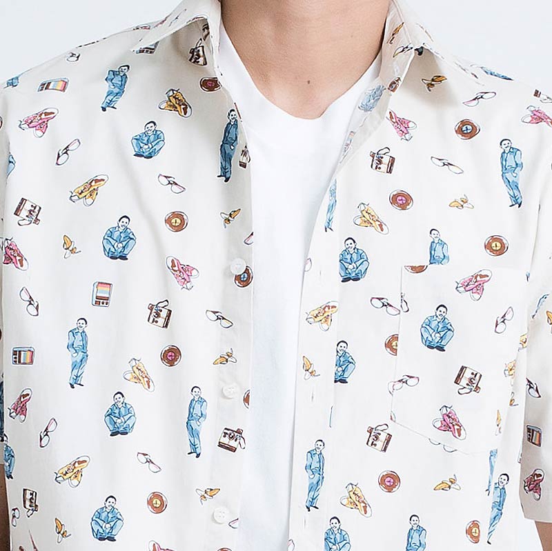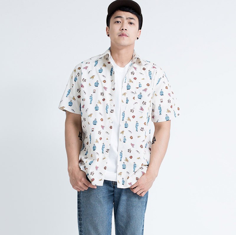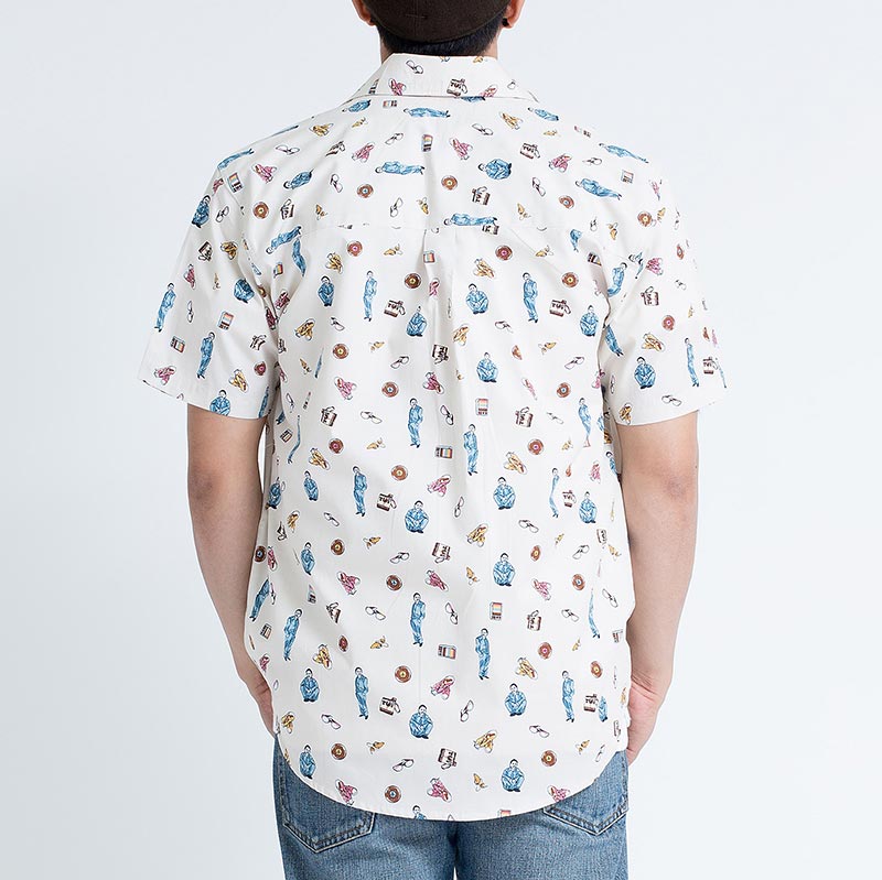 Mr.542 เสื้อเชิ้ตผู้ชายแขนสั้น ลาย 80s Disco สีครีม