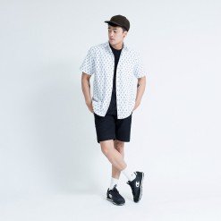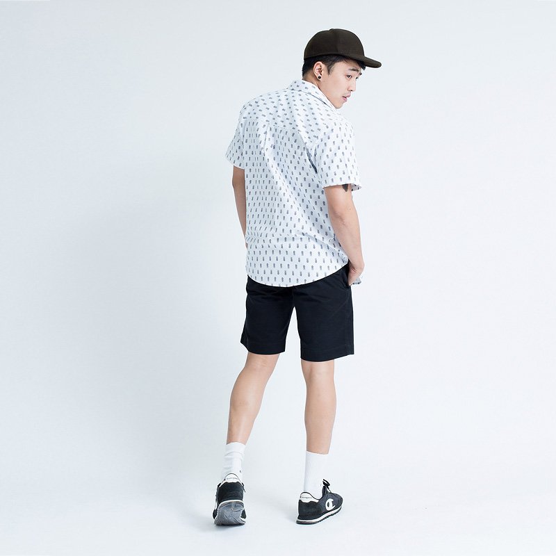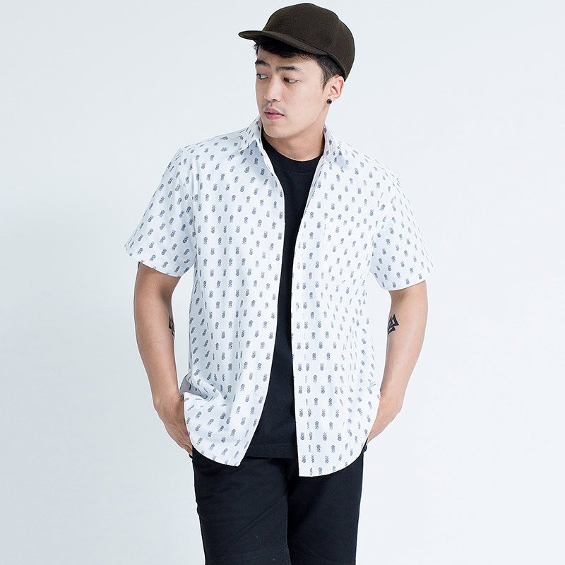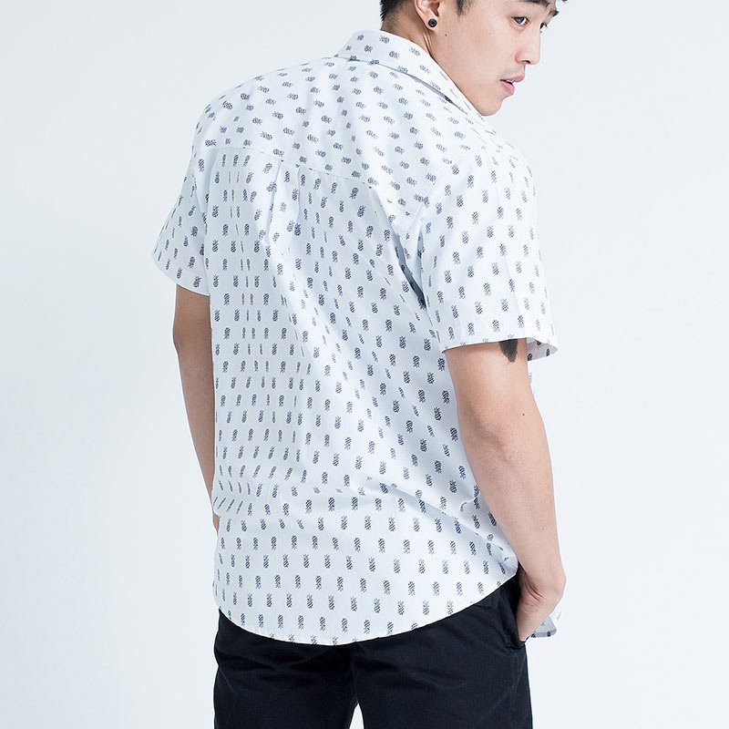 Mr.544 เสื้อเชิ้ตผู้ชายแขนสั้น ลายจุด Baby Pineapple สีขาว