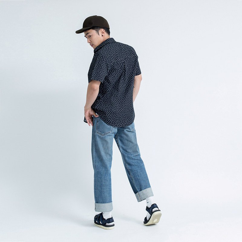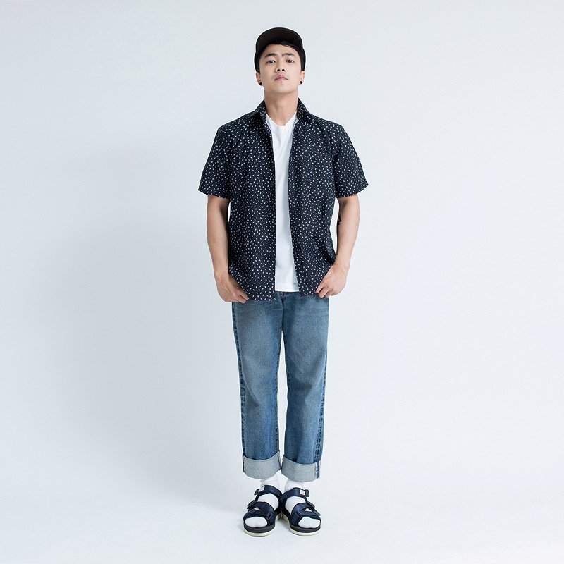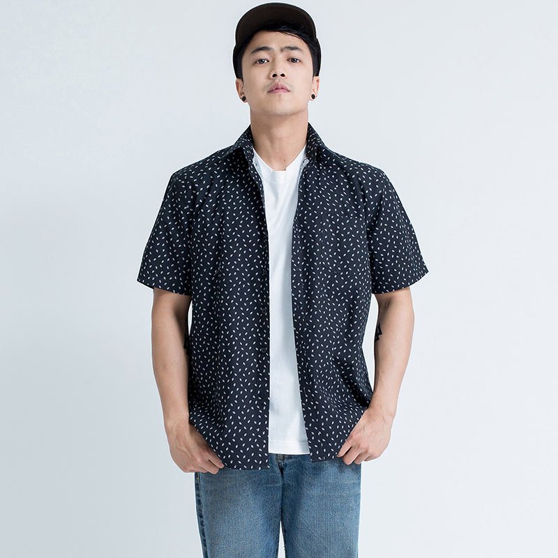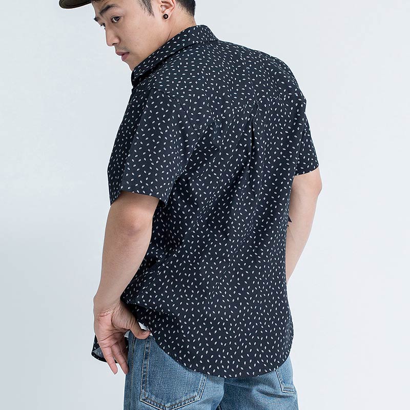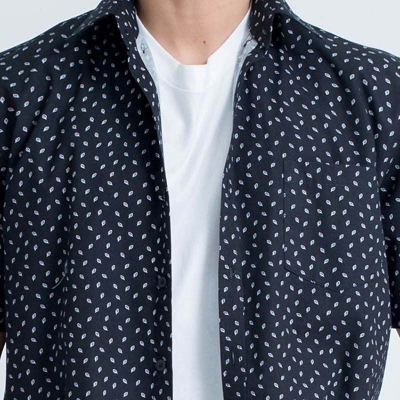 Mr.582 เสื้อเชิ้ตผู้ชายแขนสั้น ลายจุด Tiny Leaf สีดำ