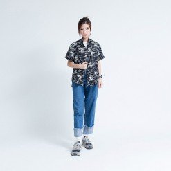 Mr.583 เสื้อเชิ้ตผู้หญิงแขนสั้น ลายฮาวาย BLACK ALOHAA สีดำ