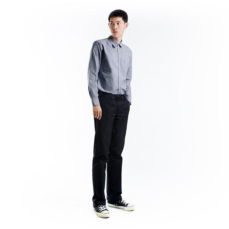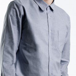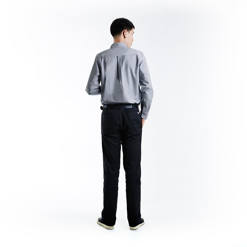 เสื้อเชิ้ตผู้ชายแขนยาว ผ้าอ๊อกฟอร์ด สีเทา ทรงเข้ารูป