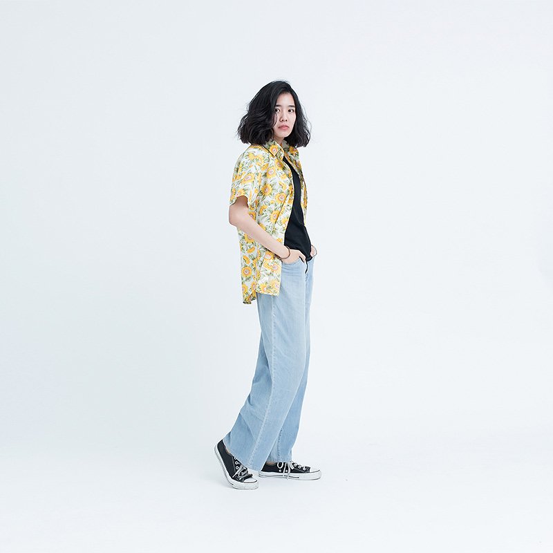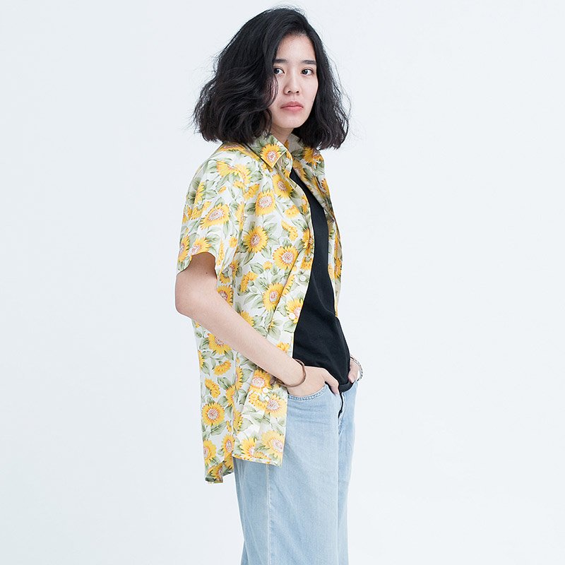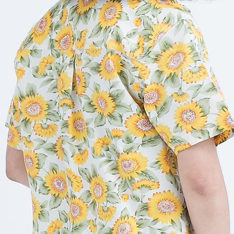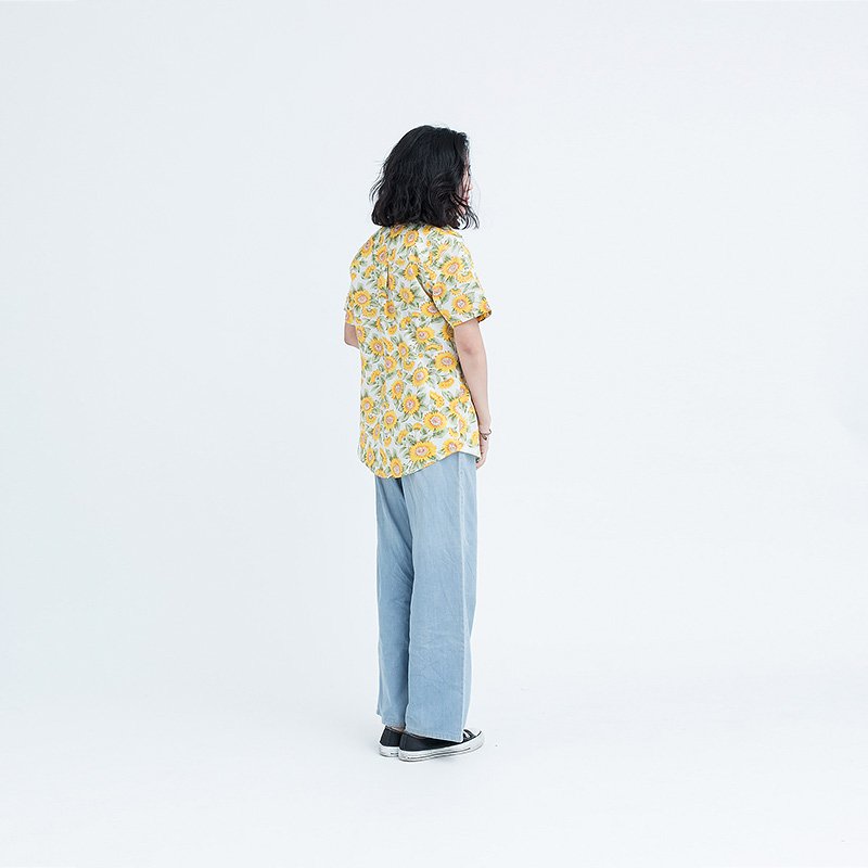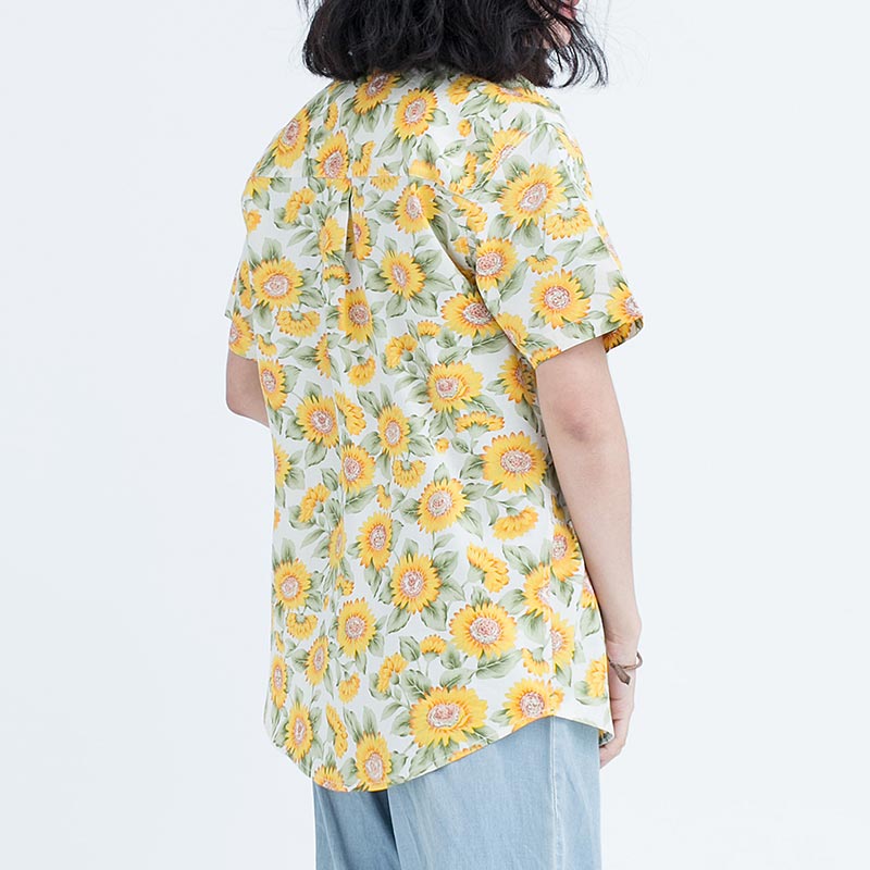 Mr.605 เสื้อเชิ้ตผู้หญิงแขนสั้น ลายดอก Sunflowers สีเหลือง