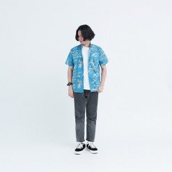 Mr.623 เสื้อเชิ้ตผู้ชายแขนสั้น ลาย Surfing Morning สีเขียวเวอร์ริเดียน