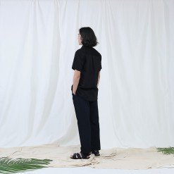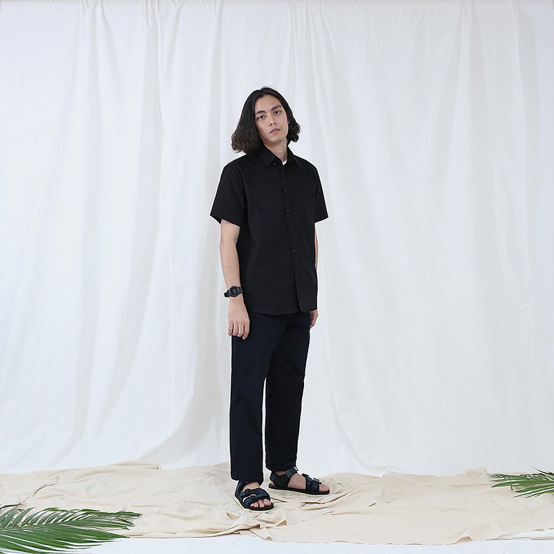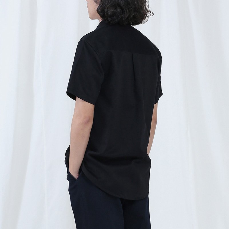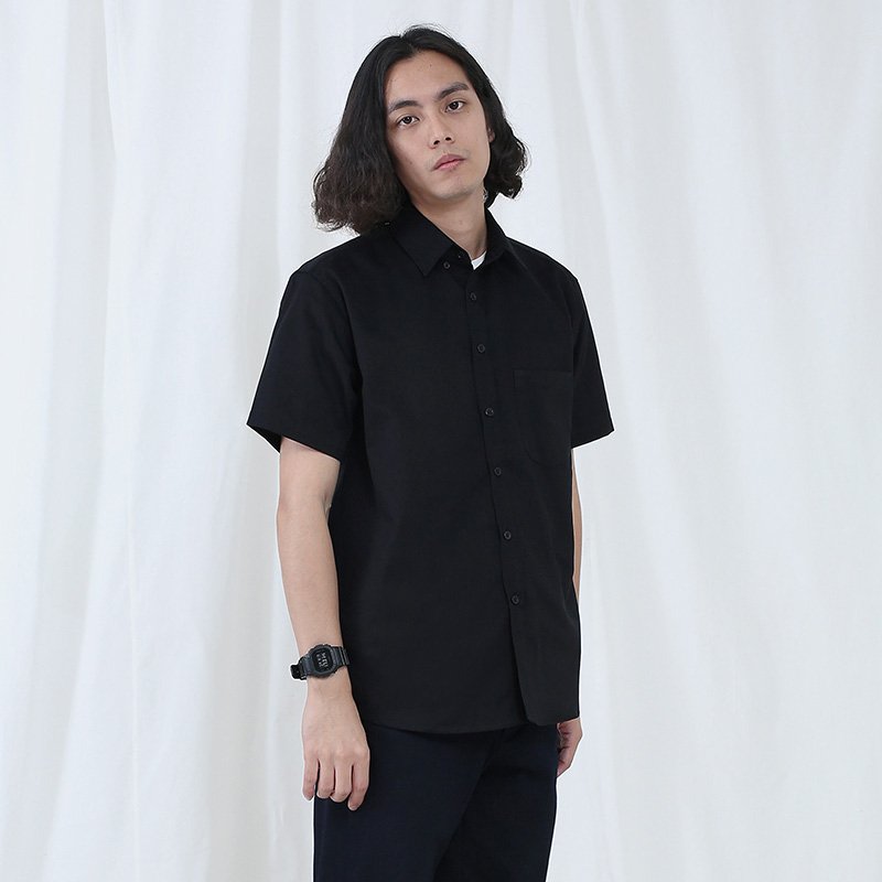 Mr.629 เสื้อเชิ้ตผู้ชายแขนสั้น พื้นเรียบสี Super Black ดำ