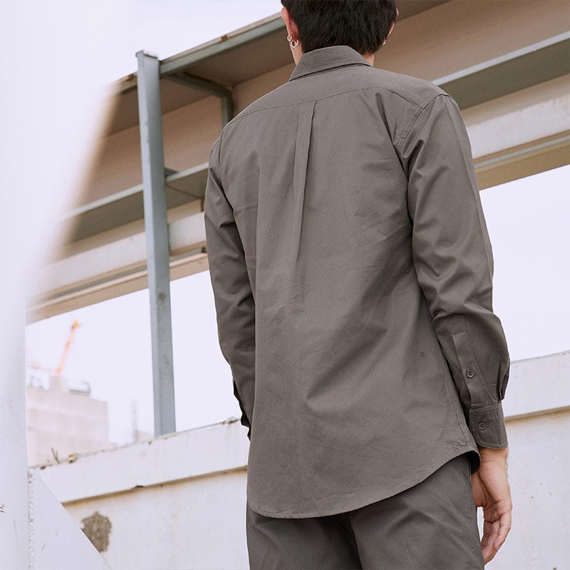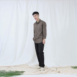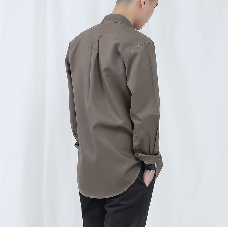Mr.633 เสื้อเชิ้ตผู้ชายแขนยาว พื้นเรียบสี Khaki เบจเข้ม