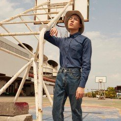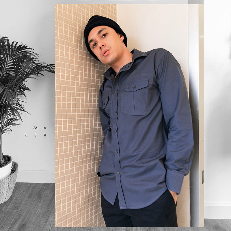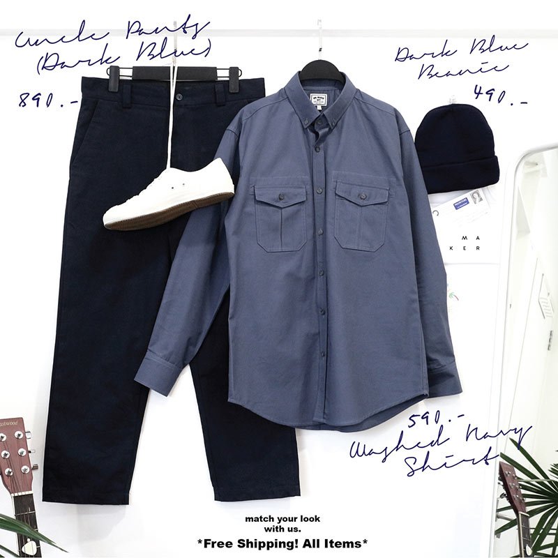 Mr.634 เสื้อเชิ้ตผู้ชายแขนยาว พื้นเรียบสี Washed Navy น้ำเงินเข้ม