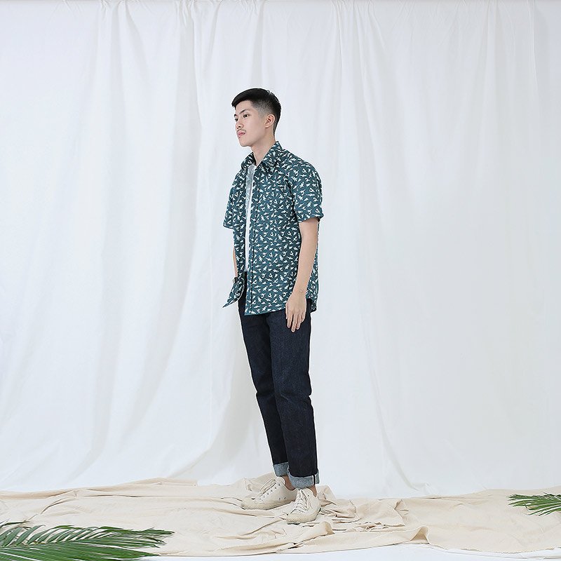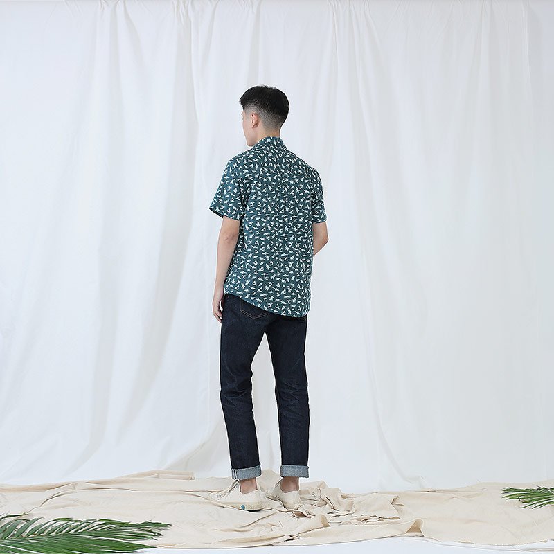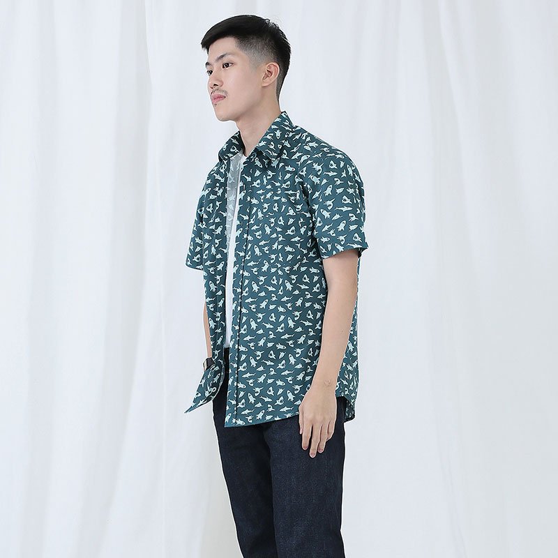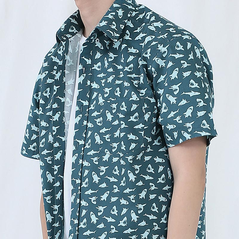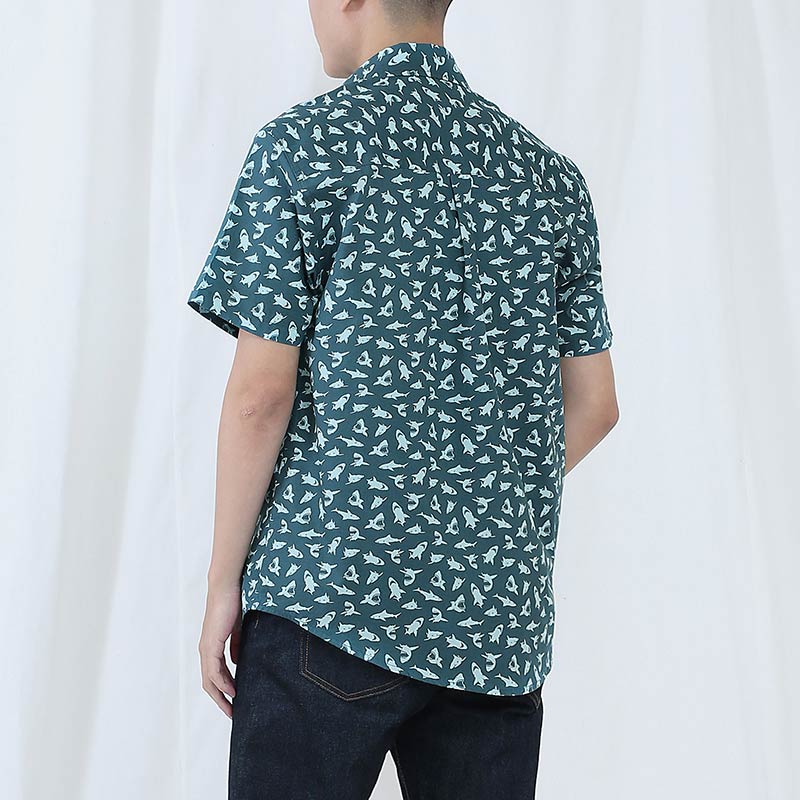Mr.643 เสื้อเชิ้ตผู้ชายแขนสั้น ลายจุด SHARKY สีเขียว