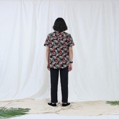 Mr.664 เสื้อเชิ้ตผู้ชายแขนสั้น ลาย Palm’s Leaf สีดำแดง