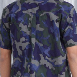 เสื้อเชิ้ตผู้ชายแขนสั้น พิมพ์ลายพราง Camo Stripe สีม่วงเขียว งานพิมพ์แน่นทั้งตัว ผ้านำเข้าญี่ปุ่น ทอละเอียด เนิ้อผ้าดี Cotton 100%