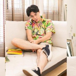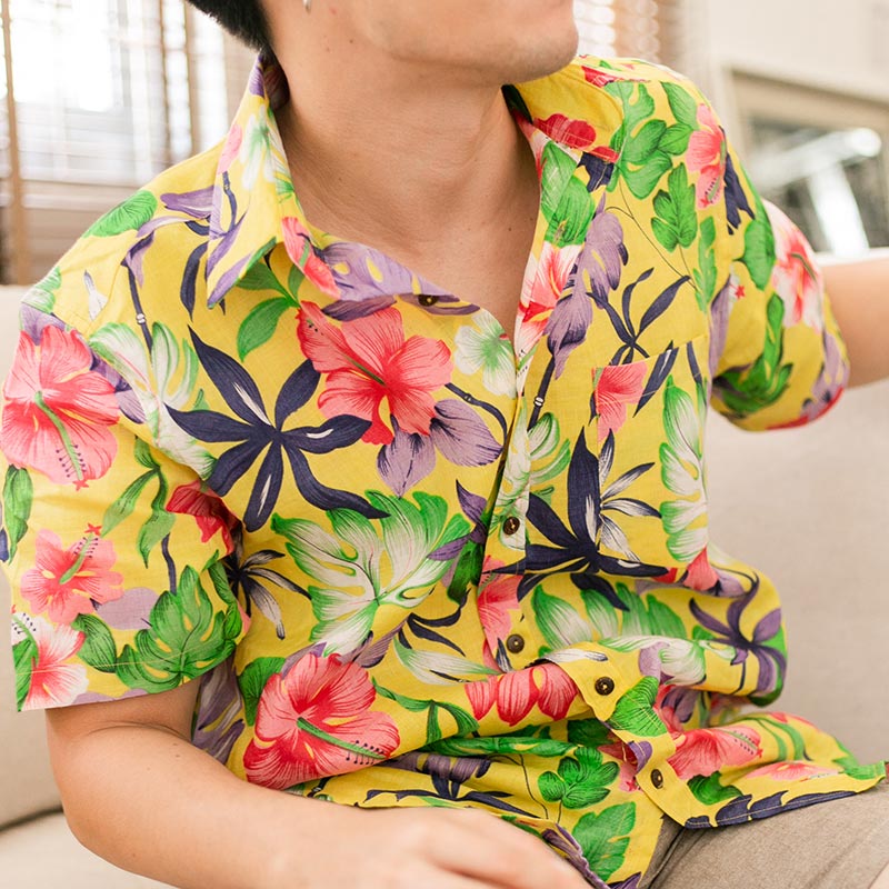 เสื้อเชิ้ตผู้ชายแขนสั้น พิมพ์ลายดอก Linen Floral สีเหลือง งานพิมพ์สีสดลายพิมพ์แน่นทั้งตัว ผ้าลินินคุณภาพดีนำเข้าญี่ปุ่น เนื้อผ้านุ่มใส่สบาย