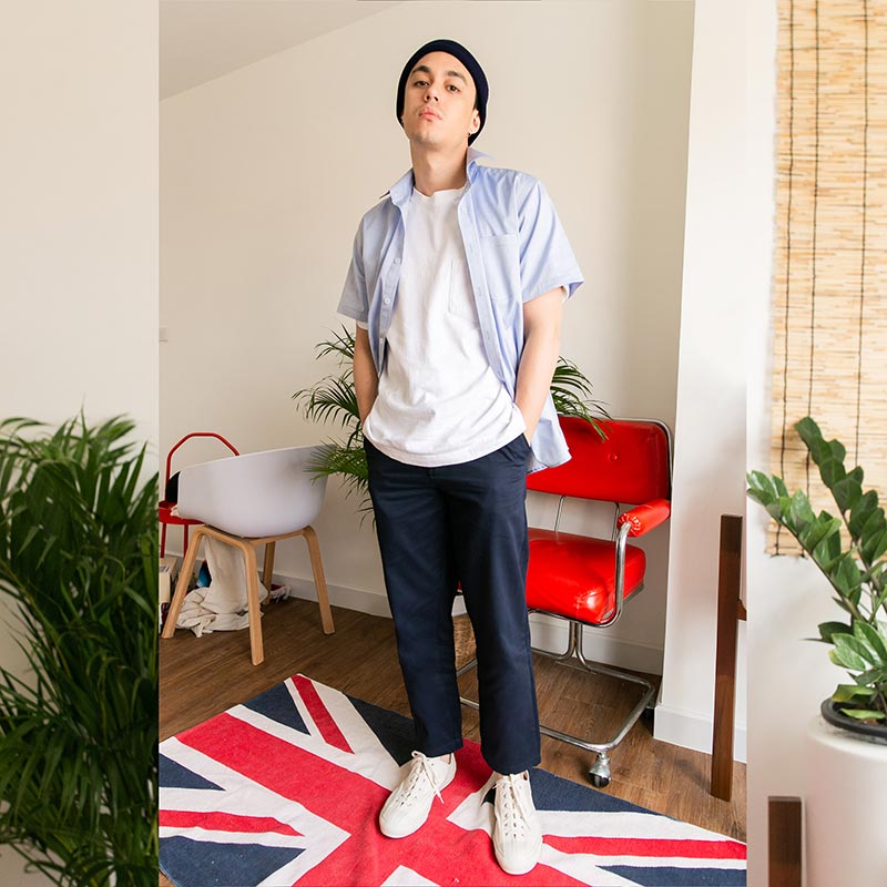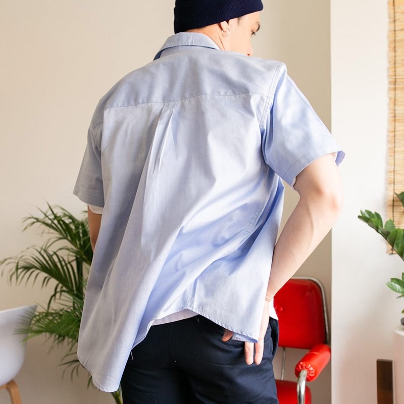 Mr.743 เสื้อเชิ้ตผู้ชายแขนสั้น Oxford Shirt สีฟ้า