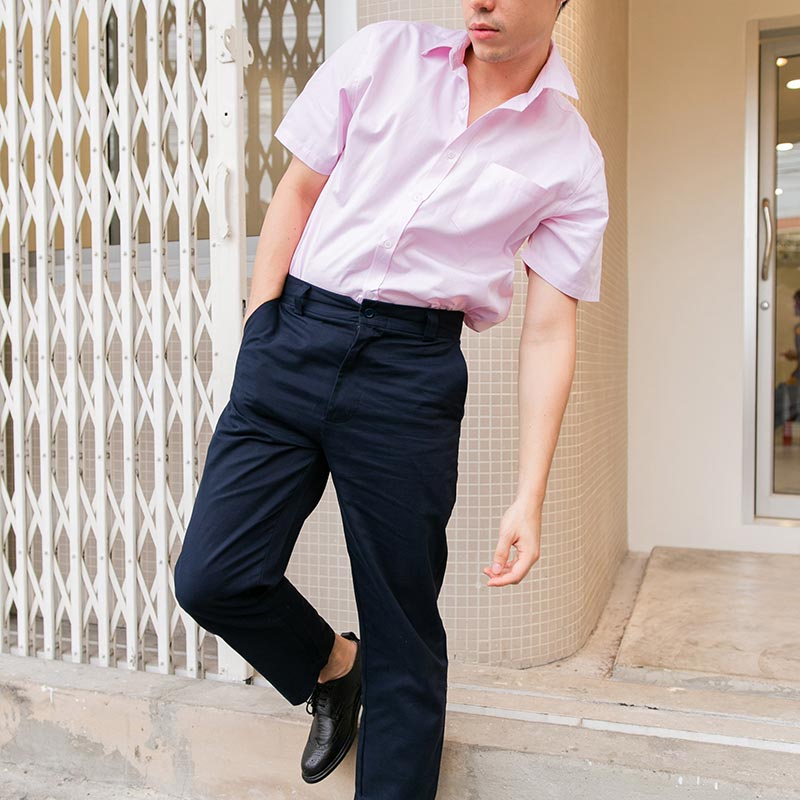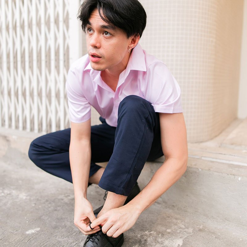 เสื้อเชิ้ตผู้ชายแขนสั้น Oxford Shirt สีชมพูอ่อน โทนสีพาสเทล ติดกระดุมที่ปกเสื้อ ผ้านุ่มทอละเอียดเส้นด้ายบางพิเศษ เนื้อผ้า Cotton