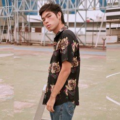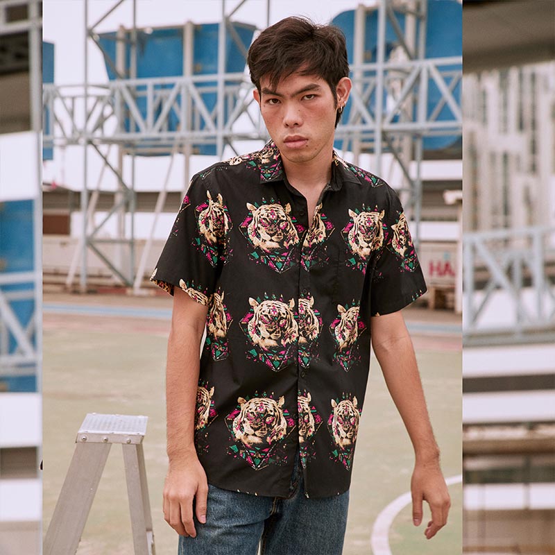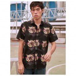 Mr.753 เสื้อเชิ้ตผู้ชายแขนสั้น ลายเสือ Multi Color Tiger Face สีดำ