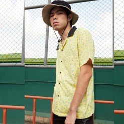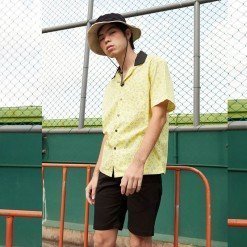 Mr.783 เสื้อเชิ้ตทรงฮาวายผู้ชาย ลายจุด Popcorn Black Collar สีเหลือง