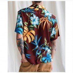 เสื้อเชิ้ตทรงฮาวายผู้ชาย พิมพ์ลายดอก Hawaii Floral สีน้ำตาล ลักษณะผ้าบางเนื้อผ้าสปัน ระบายอากาศดี ทรงสวย ใส่สบายสุดๆ