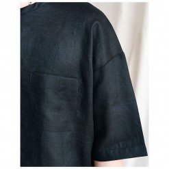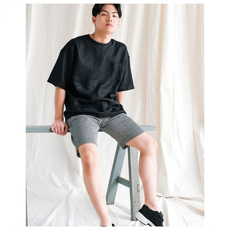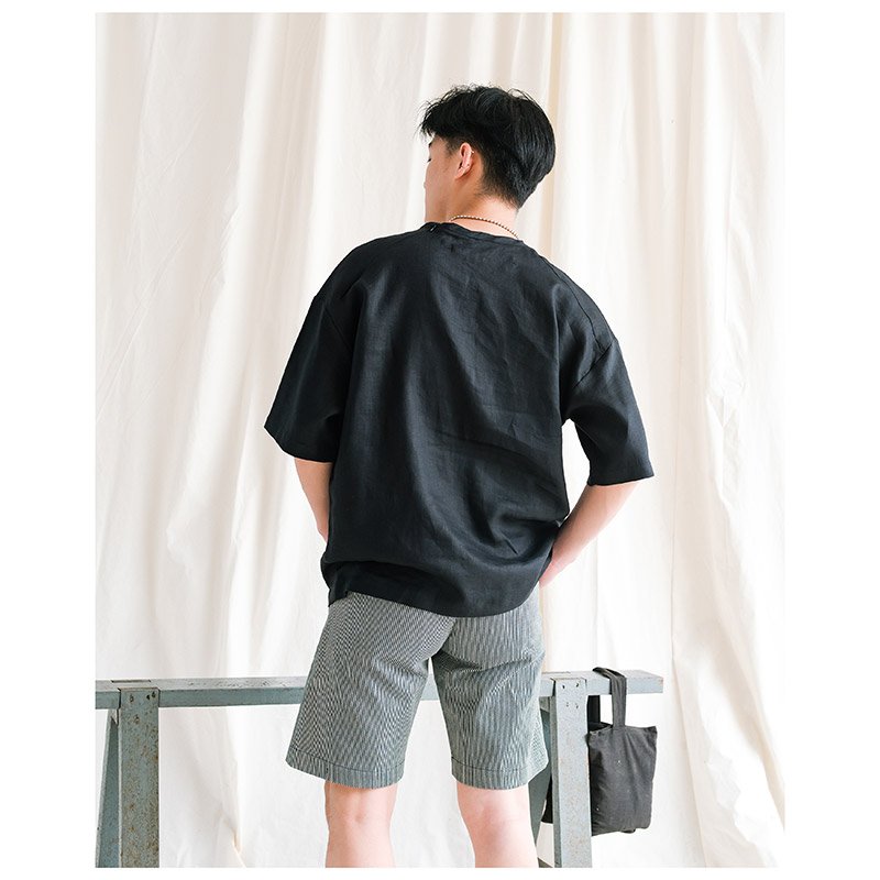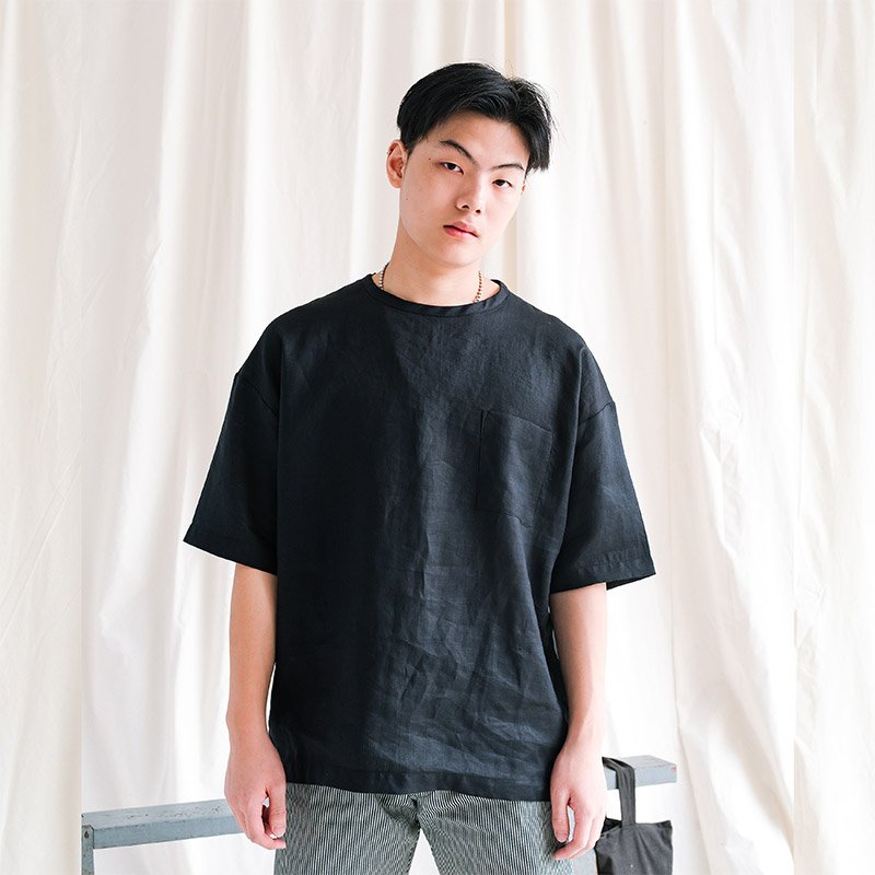 เสื้อคอกลมผู้ชาย Linen Oversized Zip Tee สีดำ เสื้อทรง Oversized ลุค Minimal Contemporary ฮิปๆ รุ่นนี้มีดีเทลซิบคอ-บ่าหลัง มีกระเป๋าหน้า สวมใส่ง่าย ใช้ผ้าลินินอย่างดี เนื้อผ้าสวยมีเสน่ห์อยู่ที่ความเป็นธรรมชาติของผ้าลินิน ระบายอากาศดี ใส่สบายมากๆ