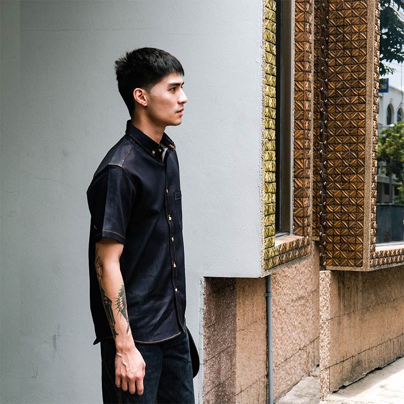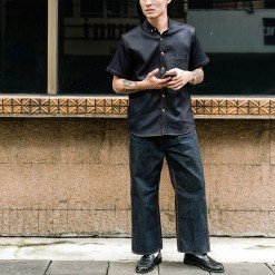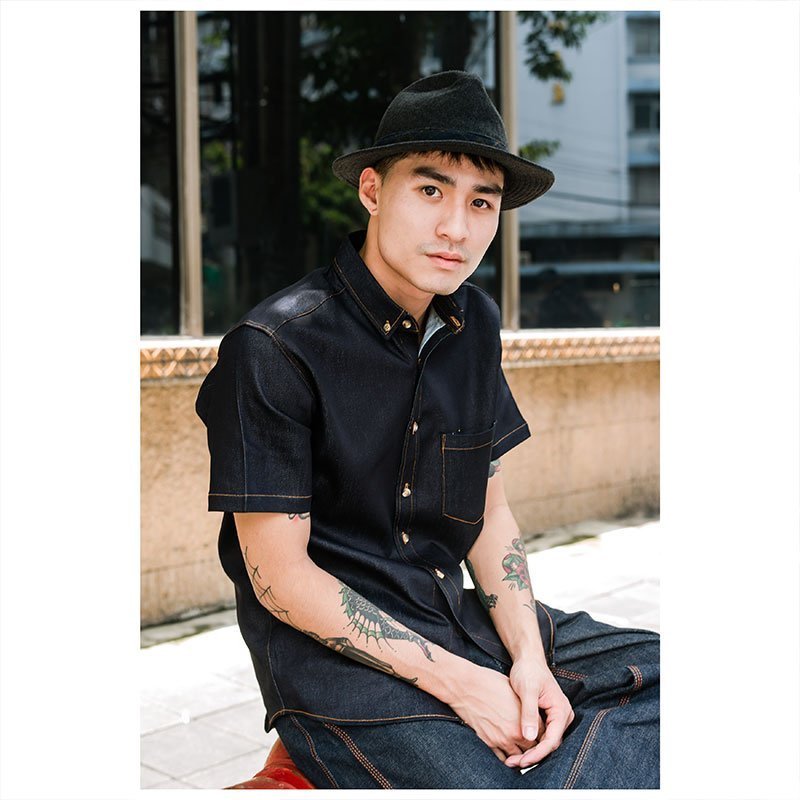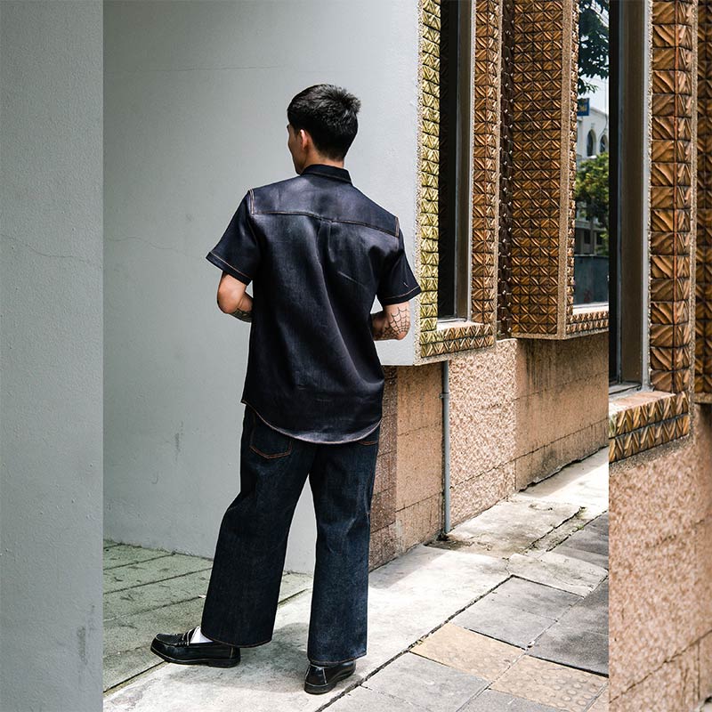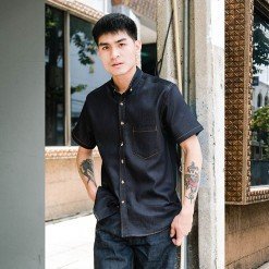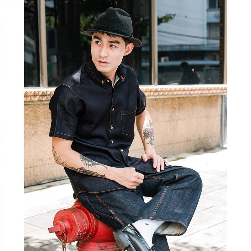 Mr.800 เสื้อเชิ้ตผู้ชายแขนสั้น ผ้าเดนิมญี่ปุ่น Workwear สียีนส์กรมเข้ม