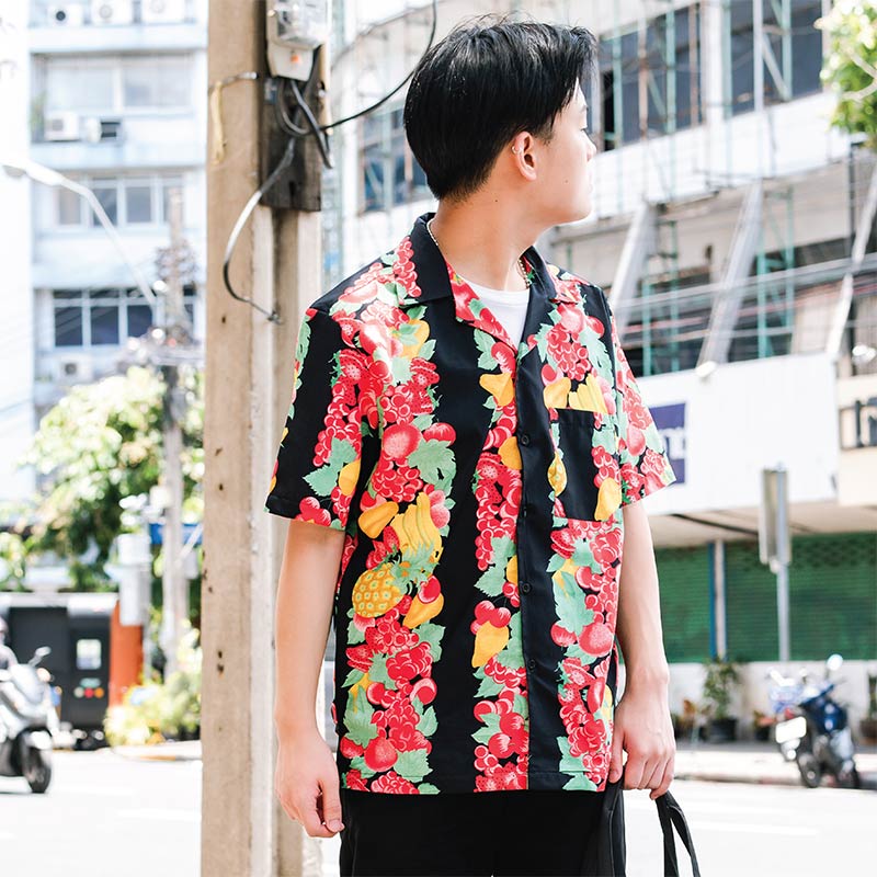 Mr.808 เสื้อเชิ้ตทรงฮาวายผู้ชาย ลาย Tutti Frutti Hawaii Shirt สีดำ