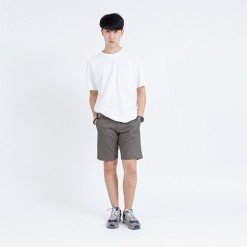 กางเกงขาสั้นผู้ชาย ผ้าชิโน Cotton Peach ฟอกนิ่ม สีน้ำตาลเบจเข้ม เนื้อผ้านุ่มพิเศษ ใส่สบาย ออกแบบด้วยกระเป๋าเจาะด้านข้างและด้านหลัง ทรง Regular Shorts