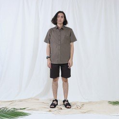 Sp.012 กางเกงขาสั้นผู้ชาย ผ้าชิโน สี Dark Brown น้ำตาลเข้ม