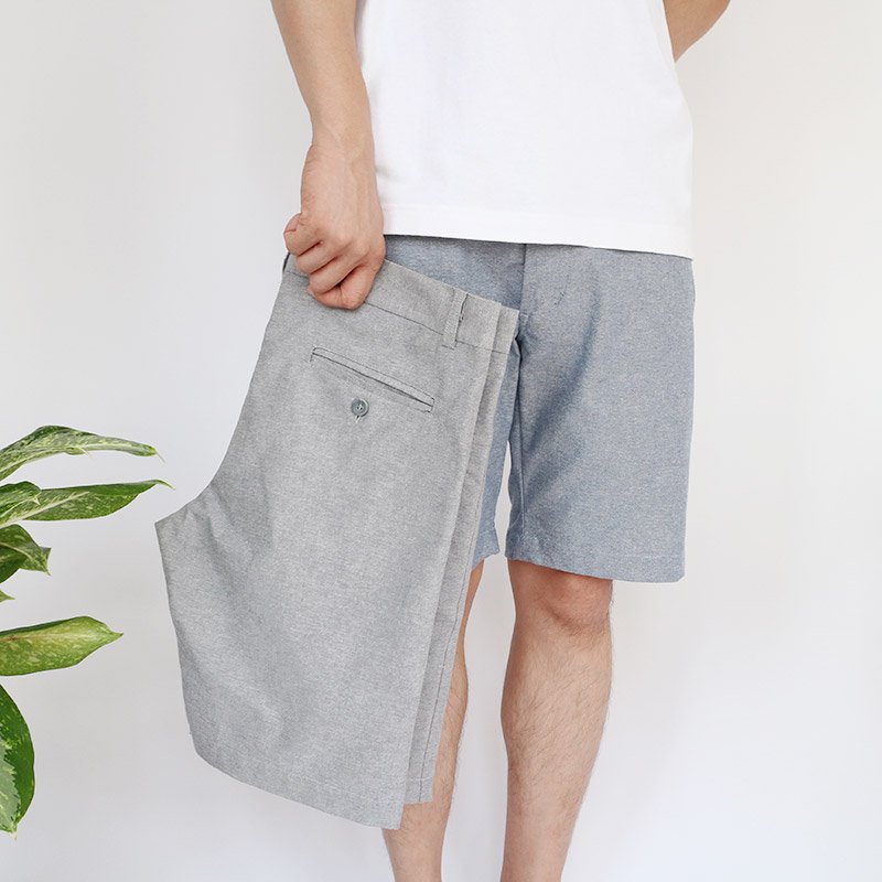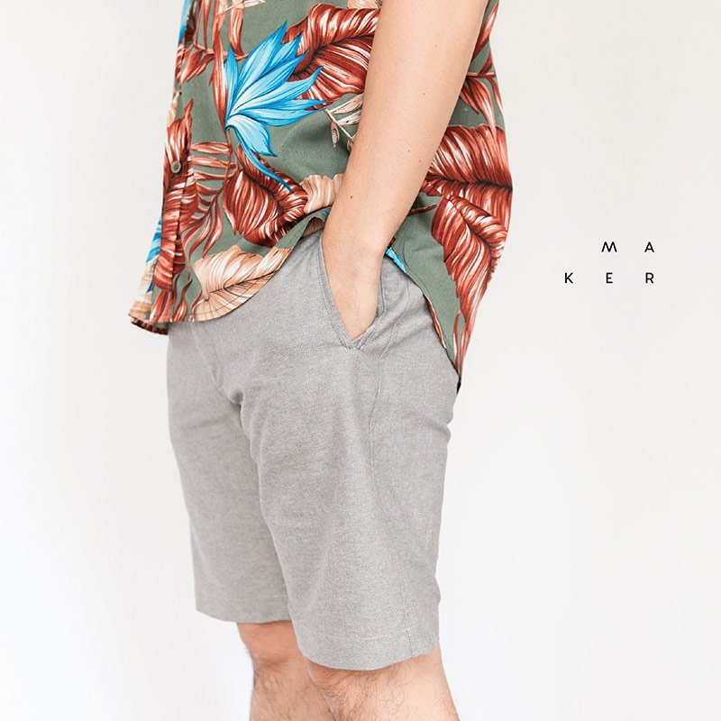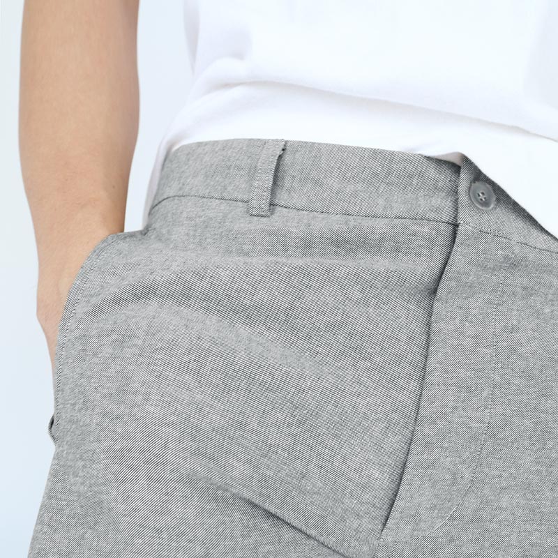 กางเกงขาสั้นผู้ชาย Active Oxford Shorts ผ้าอ๊อกฟอร์ดสีเทา เนื้อผ้านุ่มฟอก ออกแบบด้วยกระเป๋าเจาะด้านข้างและด้านหลัง ทรง Regular Shorts