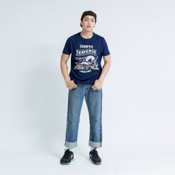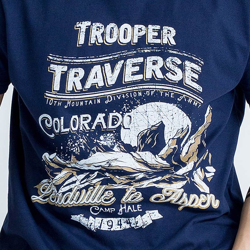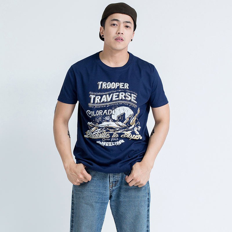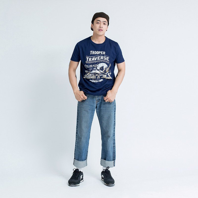 เสื้อยืดผู้ชายแขนสั้น ลาย Mt.Colorado เทคนิคสกรีน Digital เสื้อสีน้ำเงินเข้ม ผ้านุ่ม Cotton 100% สวมใส่สบาย ระบายอากาศ และซับเหงื่อได้ดี