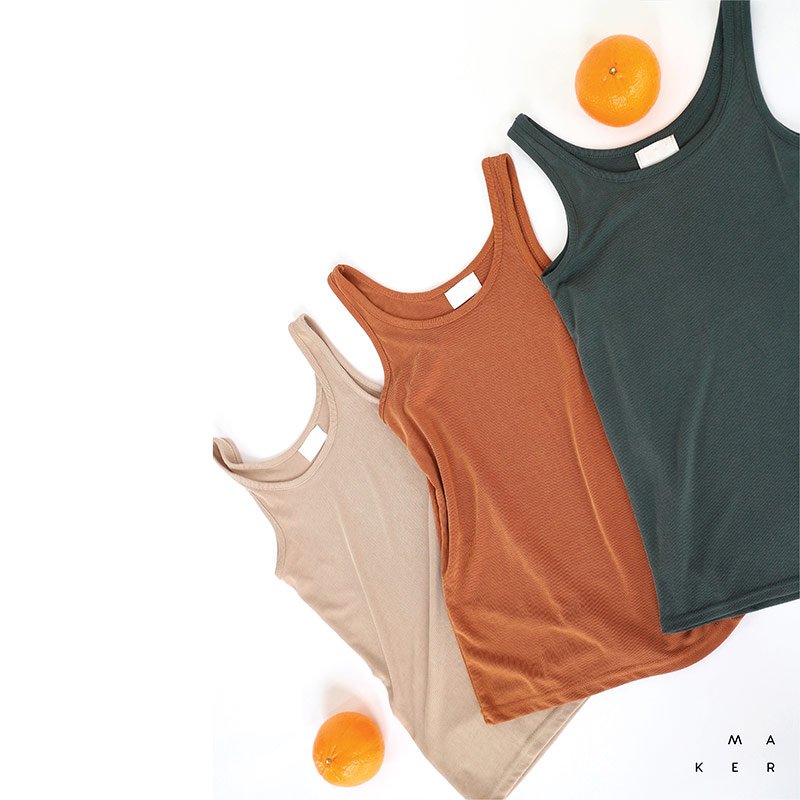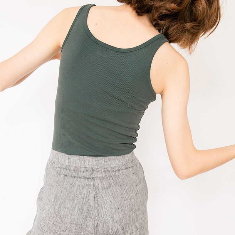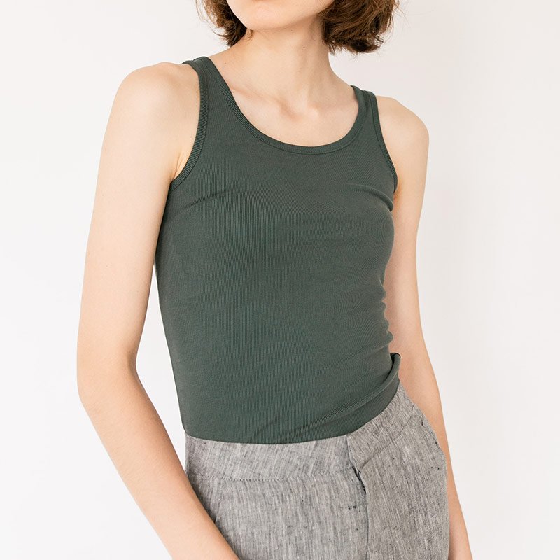 เสื้อกล้ามผู้หญิง Macy Tank Top พื้นเรียบสี Green เขียวเข้ม ผ้า Jersey เนื้อนุ่มใส่สบาย