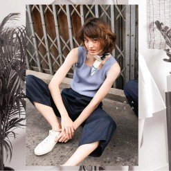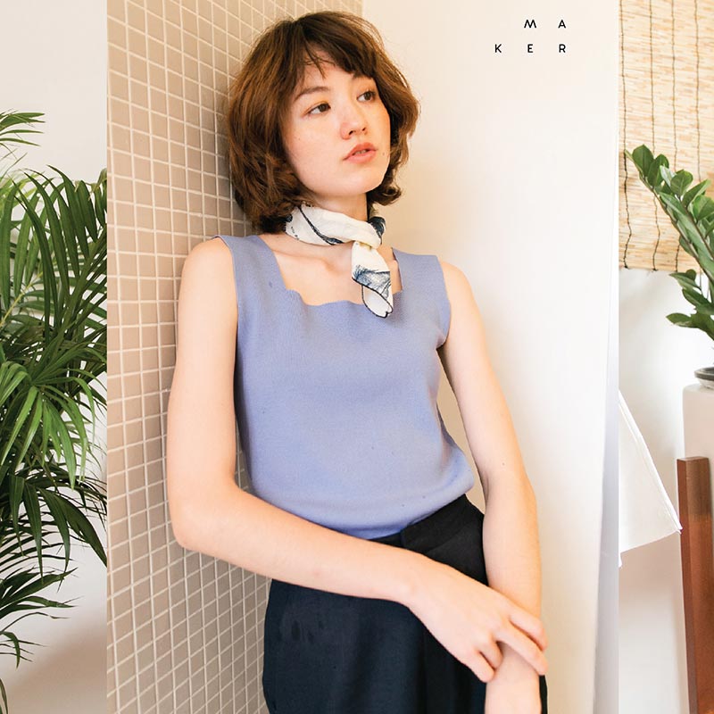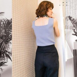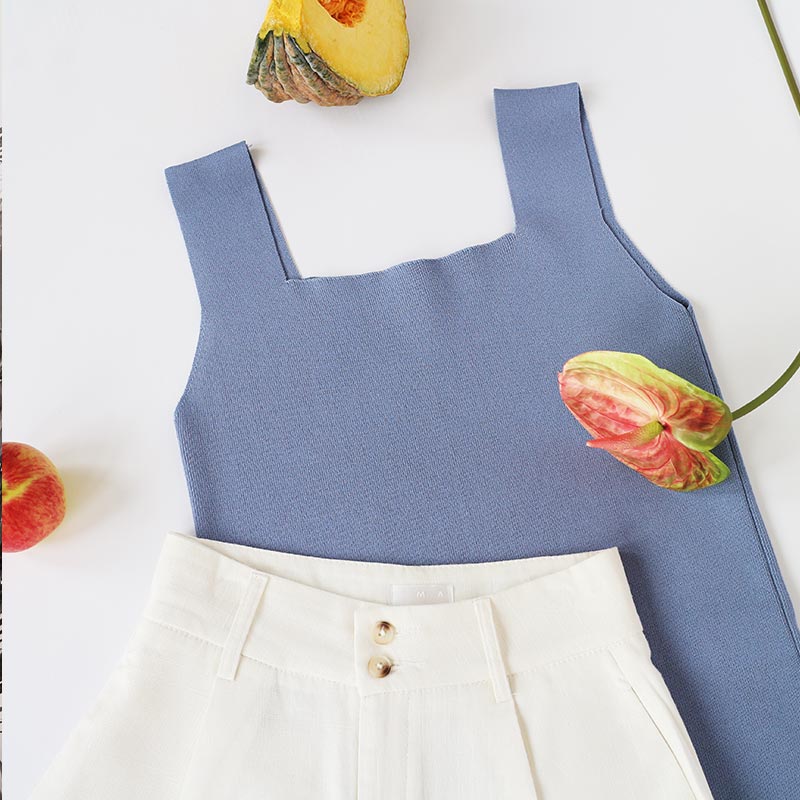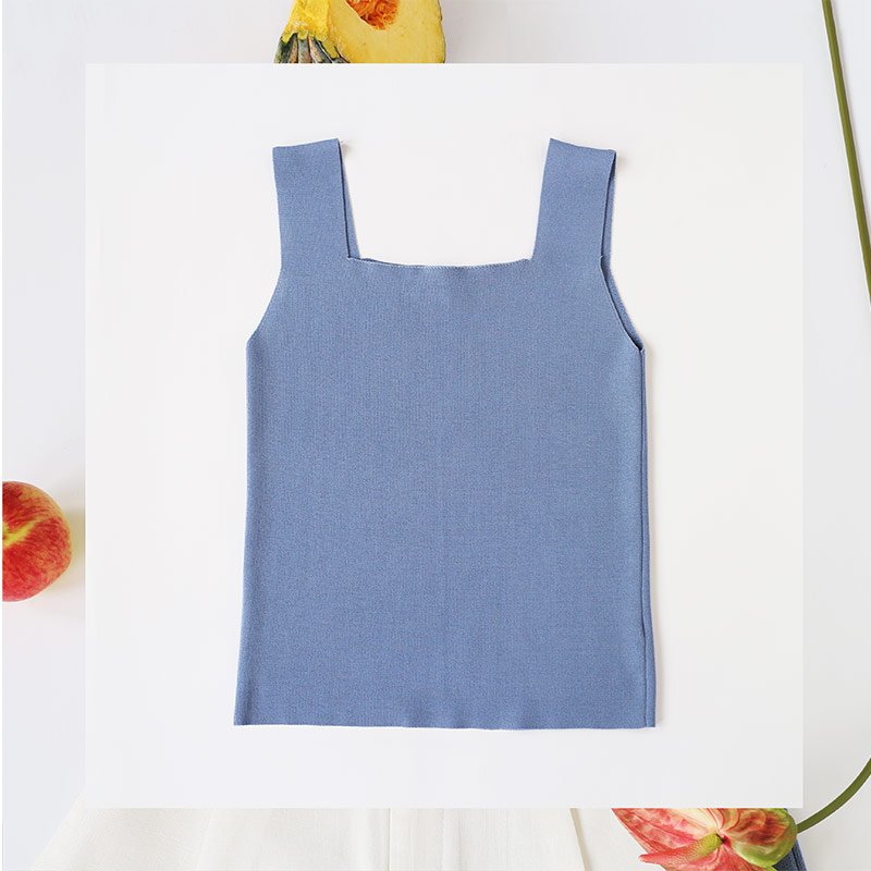 เสื้อแขนกุดผู้หญิง Blue Sky Knit Top พื้นเรียบสีฟ้า ทรง Cropped ผ้า Cotton งานถัก Knitwear Spandex