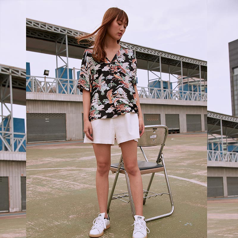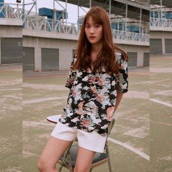 YMS-006 เสื้อเชิ้ตทรงฮาวายผู้หญิง Chinoiserie Tiger สีดำ