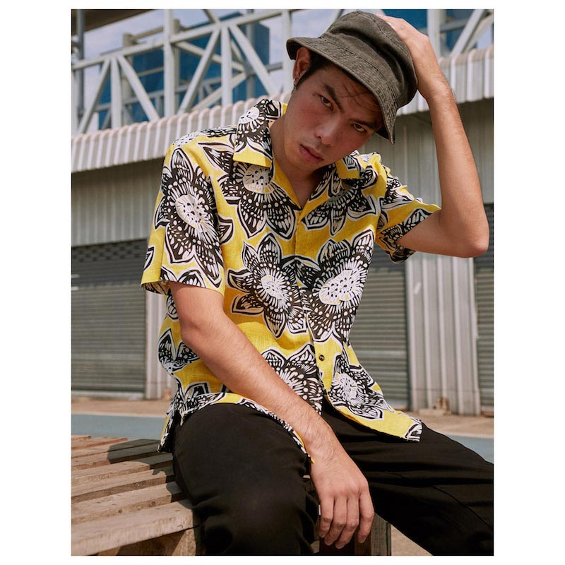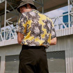 YMS-008 เสื้อเชิ้ตทรงฮาวายผู้ชาย ลายดอก Hawaii Sunflower สีเหลือง